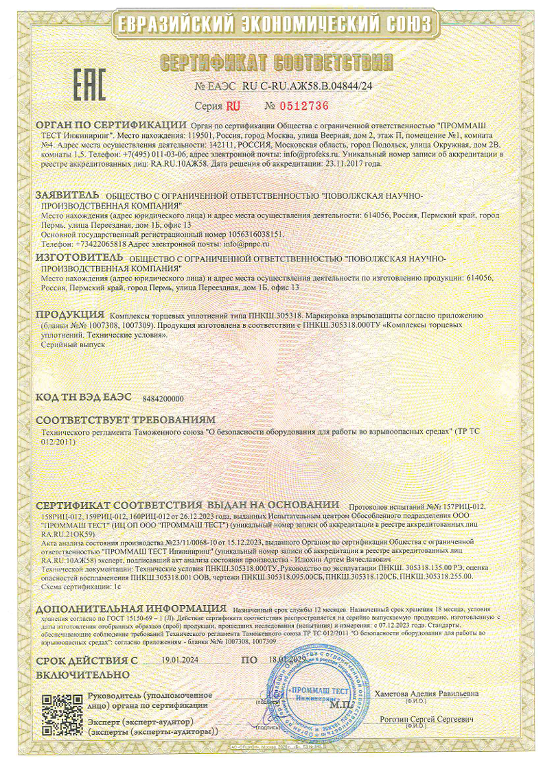 Сертификат соответствия ТР ТС 012-2011 Торцы