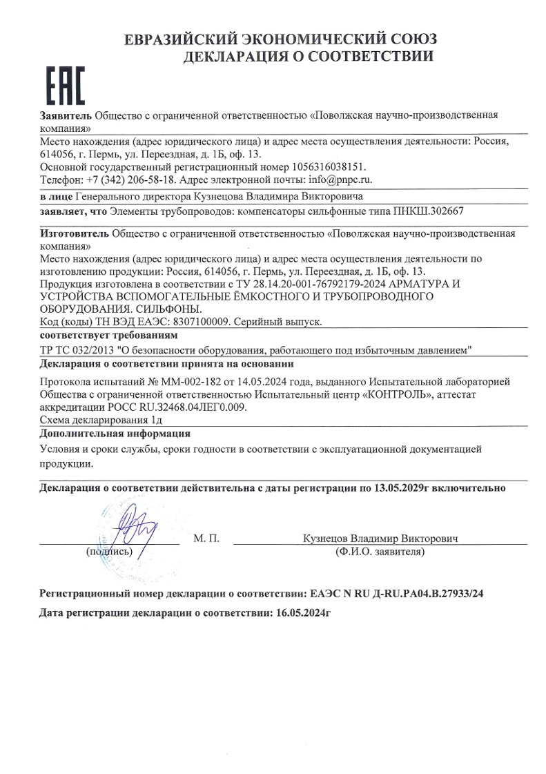 Сертификат соответствия ТР ТС 032 для оборудования работающего под давлением