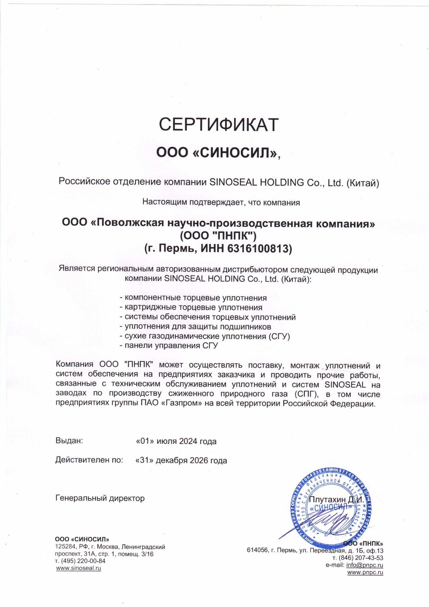 ООО “ПНПК” является авторизованным дистрибьютором компании SINOSEAL HOLDING Co., LTD